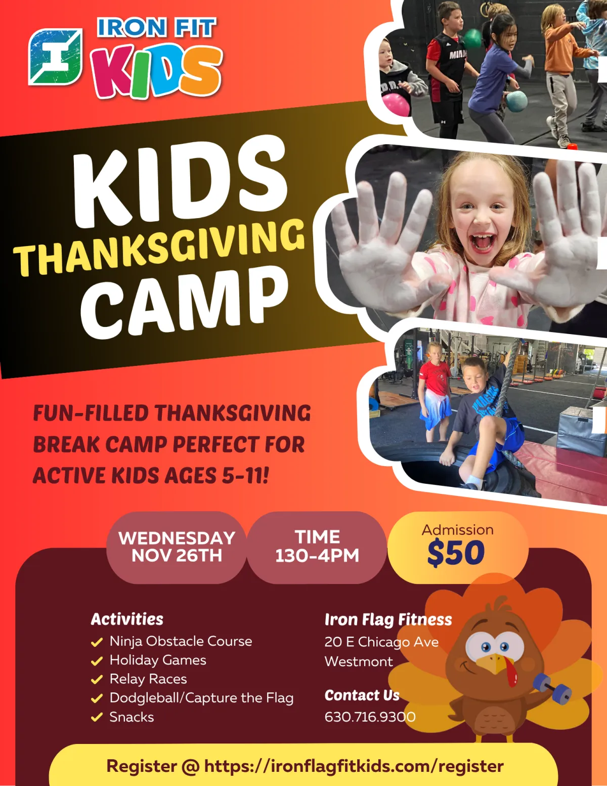 Our Thanksgiving Break Kids Camp is all about fun, movement, and teamwork — giving kids a chance to play, explore, and stay active while school’s out. With ninja-style obstacle courses, holiday-themed games, relay races, dodgeball, and more, every camper will be up, moving, and smiling!